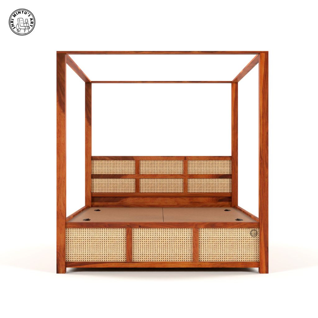 Transform your bedroom into a luxurious retreat with this Handcrafted Cane Canopy Solid Wood Bed by Shri Mintu’s Art. Designed with a perfect blend of modern elegance and timeless craftsmanship, this premium canopy bed features a sturdy solid wood structure paired with beautifully handwoven natural cane panels, creating a warm, airy and stylish aesthetic.